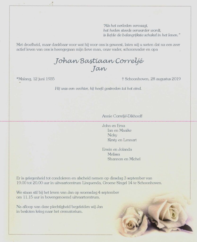 Met diepe droefenis moeten wij mededelen dat Sa Beom Nim Jan de strijd heeft verloren. SBN Jan is geboren in Malang, Java, Voormalig Nederlands Indië op 12 juni 1935. Gestorven op 28 augustus 2019 te Schoonhoven.